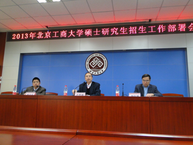 2013年研究生招生工作部署會(huì)于11月2日下午在阜成路校區(qū)開(kāi)。校黨委副書(shū)記盧思鋒、紀(jì)檢委主任潘伯洲出席了會(huì)議,研究生部相關(guān)負(fù)責(zé)人、各學(xué)院院長(zhǎng)、主管研究生工作的負(fù)責(zé)人、研教秘以及各學(xué)科負(fù)責(zé)人等參加了會(huì)議。會(huì)議由研究生部副主任張正平主持。