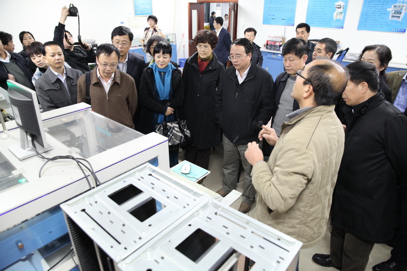 隨后,考察團一行在張德玉副書記的帶領下先后走訪了我校文科實踐中心(國家實踐教學示范中心)、工科實踐中心、圖書館、校史館和藝術樓。相關部門的負責同志認真向高校領導們介紹了我校在開展實踐教學、校史文化建設、提高學生綜合素質和實踐應用能力等方面所做的工作。高校領導們饒有興致地觀看了我校的模擬法庭、證券模擬大廳、校史館、新聞演播大廳等場所,觀看了學生繪畫作品和各種獨具創意的燈具、椅子等工業設計作品。