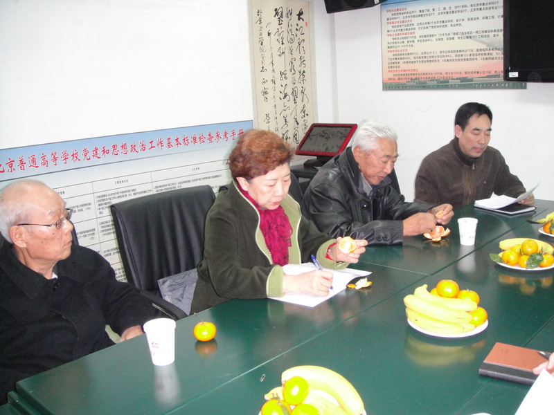 11月15日下午,離退休黨總支組織召開學習黨的十八大精神座談會。原北京商學院副院長王福成教授、馬列部潘忠貴教授,原北京輕工業學院黨委副書記丁士堃、副院長韓貴峰及關工委、老教協負責人,離退休工作處處長韓寶龍,副處長王紅英等參加了座談會。會議由離退休黨總支書記龐春生主持。