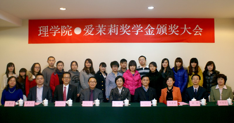 張耘副校長與姜鶴熙院長代表雙方簽署捐贈協議并為獲獎學生頒發證書。獲獎學生代表、信計09級學生高劑斌發言,感謝愛茉莉太平洋研發有限公司對理學院學子的支持和幫助,表示將不負期望,學有所長,將來為國家和人民服務,回報社會,將愛心傳遞下去。