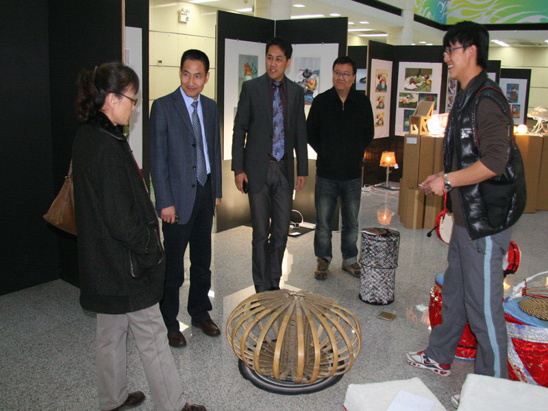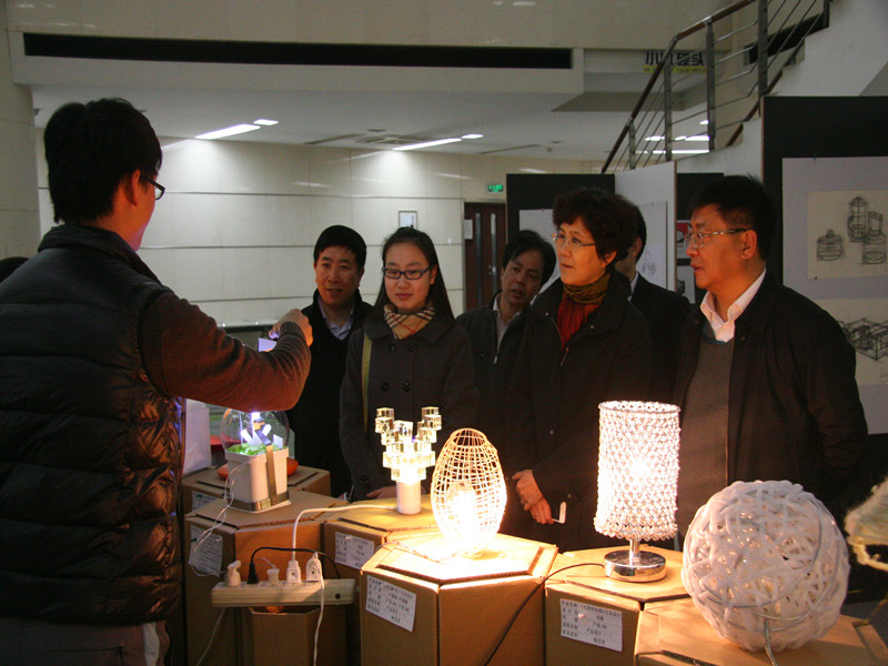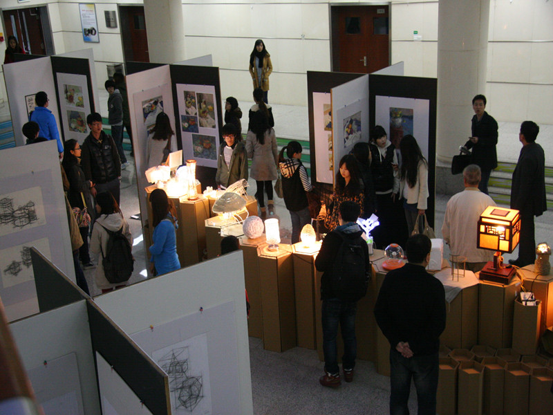近日,我校藝術樓B座一層大廳內的展覽吸引了學校各院系師生前往參觀。獨具匠心的黑白兩色展板張貼著一幅幅素描、色彩畫稿,令不少師生佇足欣賞;構思奇巧的瓦楞紙展臺上,造型豐富多樣的燈具放射出璀璨光芒,使整個展廳更加熠熠生輝。這就是我校首個藝術類試點專業——藝術與傳媒學院工業設計專業舉辦的第一門課程作品展。