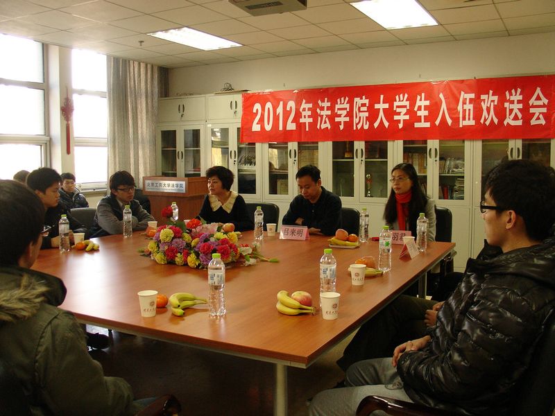 法學(xué)院一直高度重視大學(xué)生征兵入伍工作,2011年冬季,學(xué)院就有兩名學(xué)生攜筆從戎,光榮參軍。其中,學(xué)院學(xué)生黨支部書記曹洪濤成為我校乃至北京市歷史上首批入藏的新兵,光榮地進(jìn)入西藏服役。這是我院自2004年高校征兵以來第一次有學(xué)生參軍,超額完成了學(xué)校布置的任務(wù)。今年,學(xué)院又有10多人積極響應(yīng)北京市和學(xué)校號召,參加征兵報名、體檢等,最終法學(xué)10級的楊陽、趙巖兩名同學(xué)順利通過,成為即將奔赴軍營的新兵,又一次超額完成了任務(wù)。