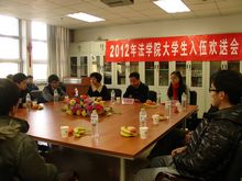 呂來明首先對應(yīng)征入伍的兩名同學(xué)表示祝賀,并提出學(xué)校及學(xué)院對他們的期盼和要求。要求他們在軍營中時時保持一個大學(xué)生的學(xué)習(xí)姿態(tài),嚴(yán)守軍規(guī)軍紀(jì),艱苦奮斗,積極進(jìn)取,樹立遠(yuǎn)大目標(biāo),不斷提高個人綜合素質(zhì),積極展現(xiàn)我校以及首都大學(xué)生的良好精神風(fēng)貌,服務(wù)軍營,報效國家。文四英、尹航也對兩名同學(xué)表示祝賀,并提出了殷切的希望,希望他們跟家人、老師、同學(xué)經(jīng)常保持聯(lián)系,有困難隨時和學(xué)院進(jìn)行溝通,學(xué)院會盡力給予幫助。張羽君也對兩名學(xué)生提出鼓勵和希望。與會的學(xué)生代表,為他們也送上溫馨的祝福。入伍新兵楊陽、趙巖表示他們將不辱使命,不辜負(fù)學(xué)校老師們的囑托和希望,在部隊中刻苦鍛煉,堅持學(xué)習(xí),建功立業(yè)。最后,學(xué)院為兩名同學(xué)送上了禮物,希望他們無論走到哪里,都能有學(xué)院的溫暖在身邊。
