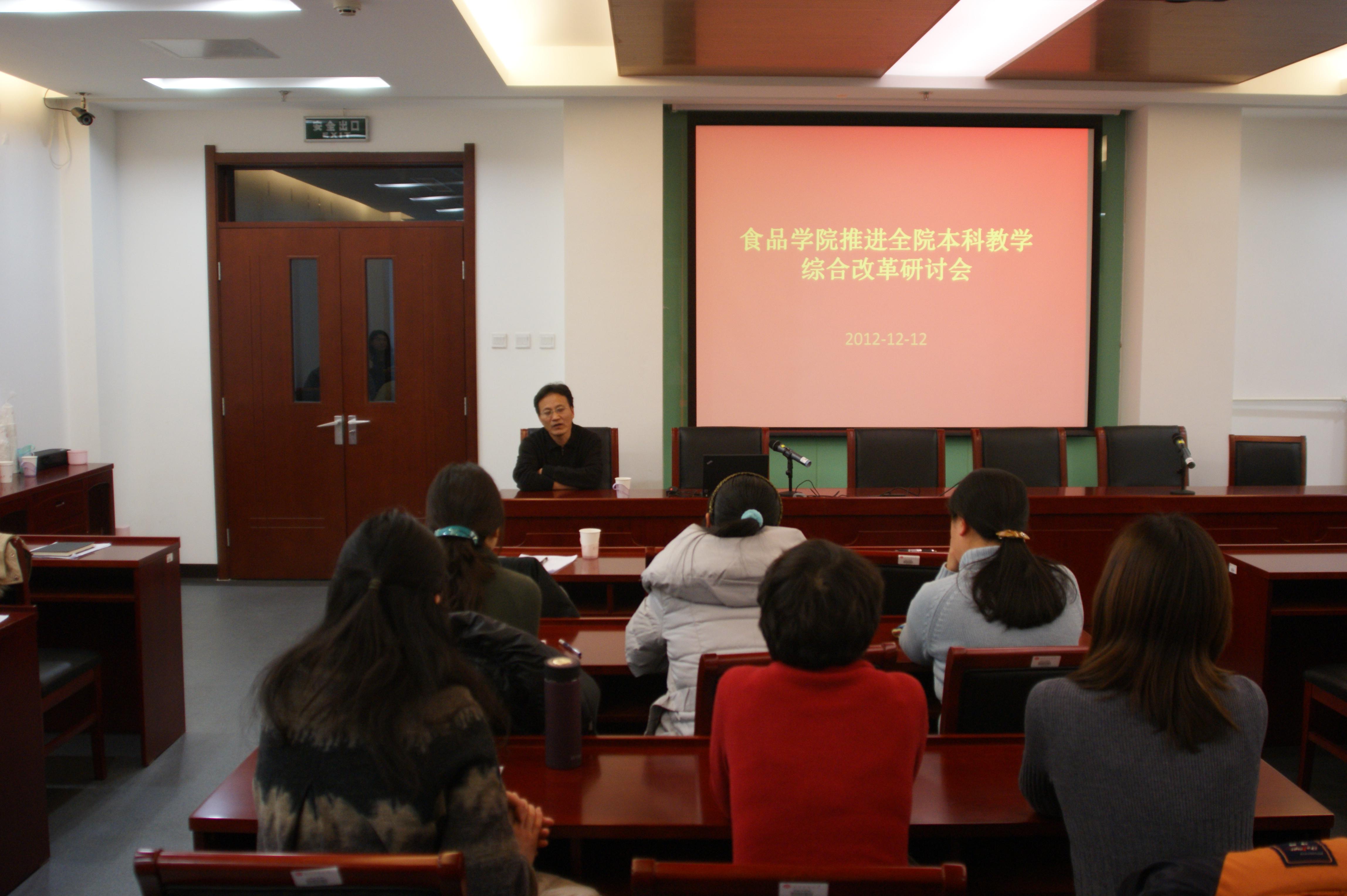 魏中龍處長做了主題為“全面推進本科教學綜合改革”的報告,分別從怎樣看待本科教學綜合改革、為什么要進行本科教學綜合改革、我校本科教學存在的問題、本科教學綜合改革的措施、本科教學綜合改革的目標進行了深入論述,并對食品學院的本科教學改革提了5條建議。
