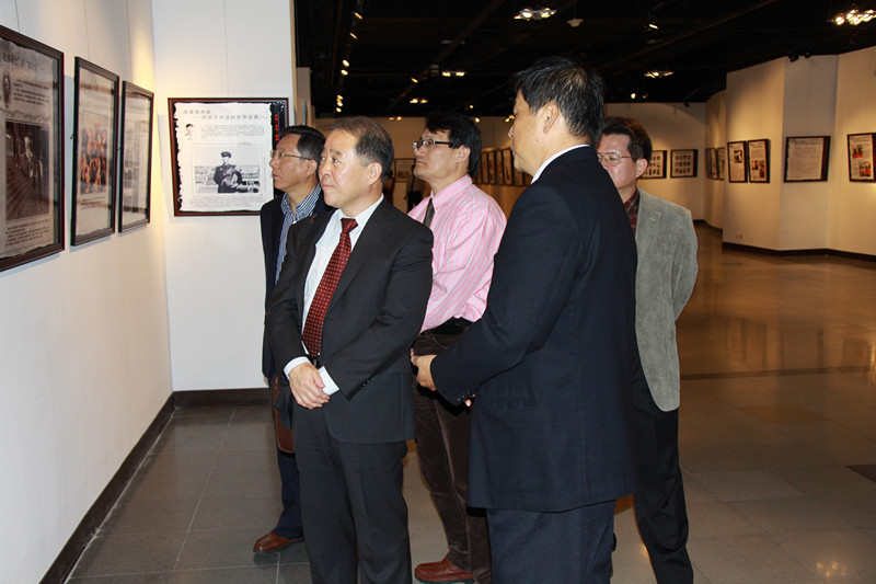 考察團在參觀昆山科技大學(xué)圖片展覽 考察團與南榮技術(shù)學(xué)院董事長、校長交流