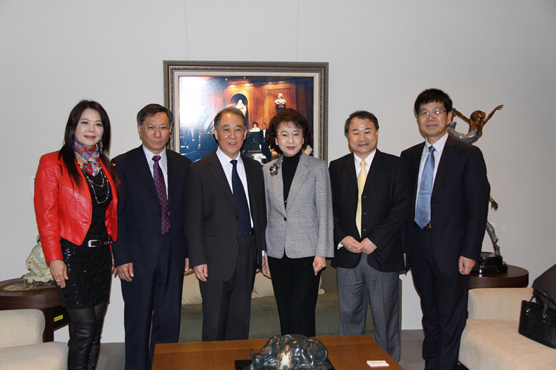 考察團與實踐大學(xué)顧問林澄枝女士交流后合影 考察團與實踐大學(xué)董事長交流后合影