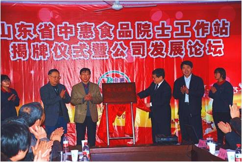 12月16日,龐國芳院士、孫寶國院士山東中惠食品有限公司院士工作站在山東惠民縣舉行揭牌儀式。孫寶國院士、中國食品發酵工業研究院副院長宋全厚、山東省科協秘書長陳愛國、山東省科技廳原副廳長王家利、山東省對外科技交流中心副主任祝恩元、中國生物發酵產業協會理事長石維忱、山東省濱州市副市長耿濤、濱州市科技局局長紀思彬、惠民縣委書記范連生、縣長李守江、山東中惠食品有限公司董事長趙吉興以及江南大學、山東輕工業學院、山東食品發酵工業研究設計院等領導和教授出席了揭牌儀式。
