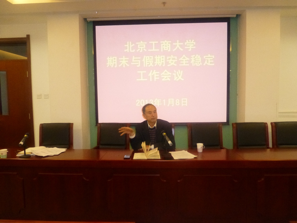 盧思鋒副書記分析了全國和首都影響安全穩定的主要因素,結合學校安穩工作的實際,強調了期末及寒假期間安全穩定工作的重要性。他對各二級單位做好安全穩定工作提出幾點要求:一是要高度重視安全穩定工作,繼續加強對學校師生的安全教育,充分利用好學校的短信平臺系統,及時發布防火防盜防交通事故的安全提示;二是要在放假前和假期中開展全面的安全檢查,特別是學生公寓、食堂、圖書館、實驗室和網絡中心等要害部位和敏感區域,認真做好安全隱患的排查和整改工作;三是要做好寒假期間良鄉校區封閉式管理的各項準備工作;四是要做好假期間的安全值班工作,確保值班人員到崗到位;五是放假期間盡量不要組織集體外出活動。希望通過各單位的努力,使廣大師生員工度過一個平安、愉快的節日。此外,他還提醒大家要注意安全用電,注意防火、防盜,個人假期出行要注意交通安全和食品安全。