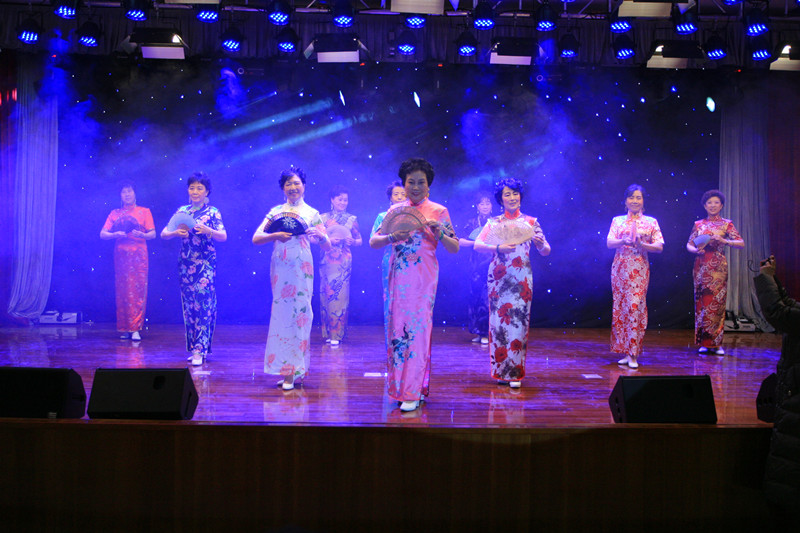 聯歡會由離退休教職工姚振聲、李華共同主持。近100名離退休老同志登臺獻藝,演出了管樂、合唱、舞蹈、時裝、太極拳、古箏、葫蘆絲和京劇等12個節目,節目精彩紛呈。開場的管樂合奏《鈴兒響叮當》和《茉莉花》氣氛歡快,節奏明快流暢的演奏感染了臺下觀眾,掀起了聯歡會的第一個高潮。舞蹈隊表演了朝鮮舞蹈《蘋果豐收》,觀眾們仿佛親臨果園,與演員們一起體驗蘋果豐收的喜悅,曲調歡快,舞姿優美;女生小合唱《瑪依拉》和《江山》,深邃的曲調、優美的歌聲,表達了我校離退休老同志對黨和國家的無比熱愛之情;三句半《退休了》道出退休生活的喜與樂;舞蹈劇《昨天與今天》更是讓人捧腹大笑、忍俊不止;伴隨著《太湖美》的悠揚音樂,時裝隊員進行了旗袍展示,她們身著典雅秀麗的旗袍,身姿搖曳,神態優雅,以飽滿的精神狀態展示出美麗和自信。