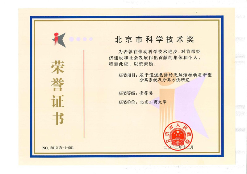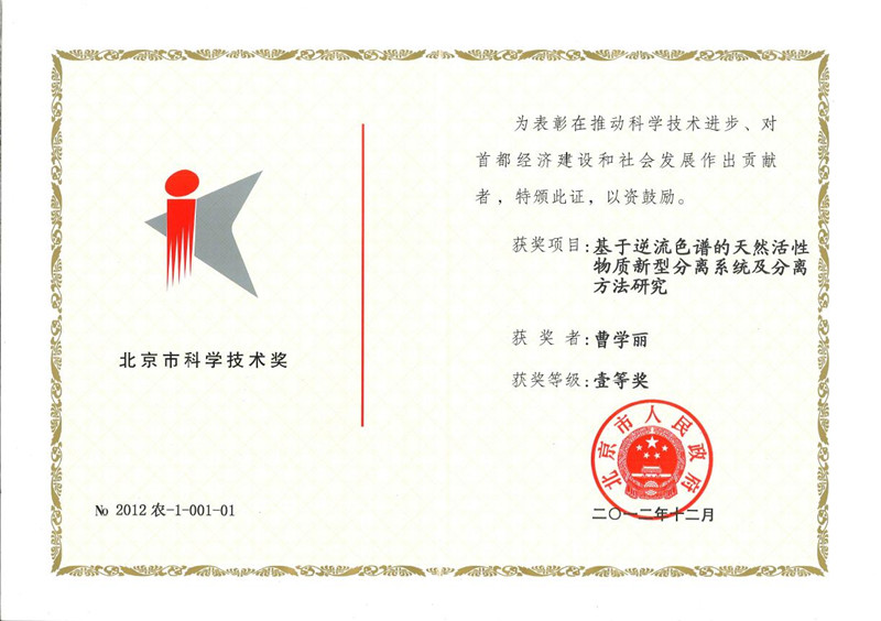 近日,北京市委、市政府隆重召開科學技術獎勵大會,表彰獲得2012年度北京市科學技術獎的科技創(chuàng)新成果,市委、市政府主要領導出席大會。我校曹學麗教授主持完成的《基于逆流色譜的天然活性物質新型分離系統(tǒng)及分離方法研究》研究項目榮獲2012年度北京市科學技術獎一等獎。
