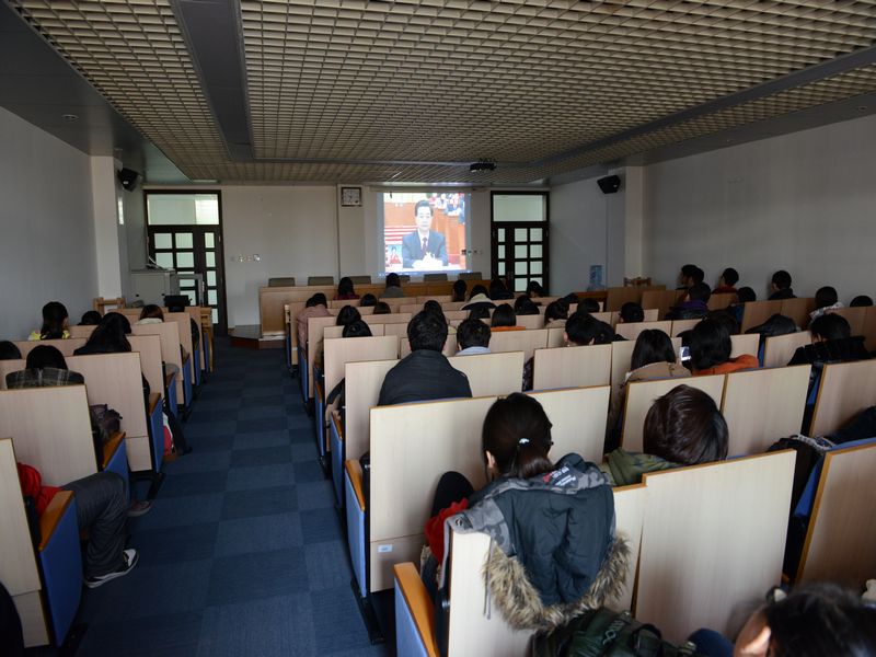 3月5日上午9點,人民大會堂國歌聲響起,十二屆全國人大一次會議隆重舉行。學校良鄉校區行政樓106室氣氛莊嚴肅穆,百余名學生聚精會神地觀看大會直播。認真聽完溫家寶總理的政府工作報告后,同學們對經濟增長、新增就業、穩定物價等惠民政策和措施反響強烈。