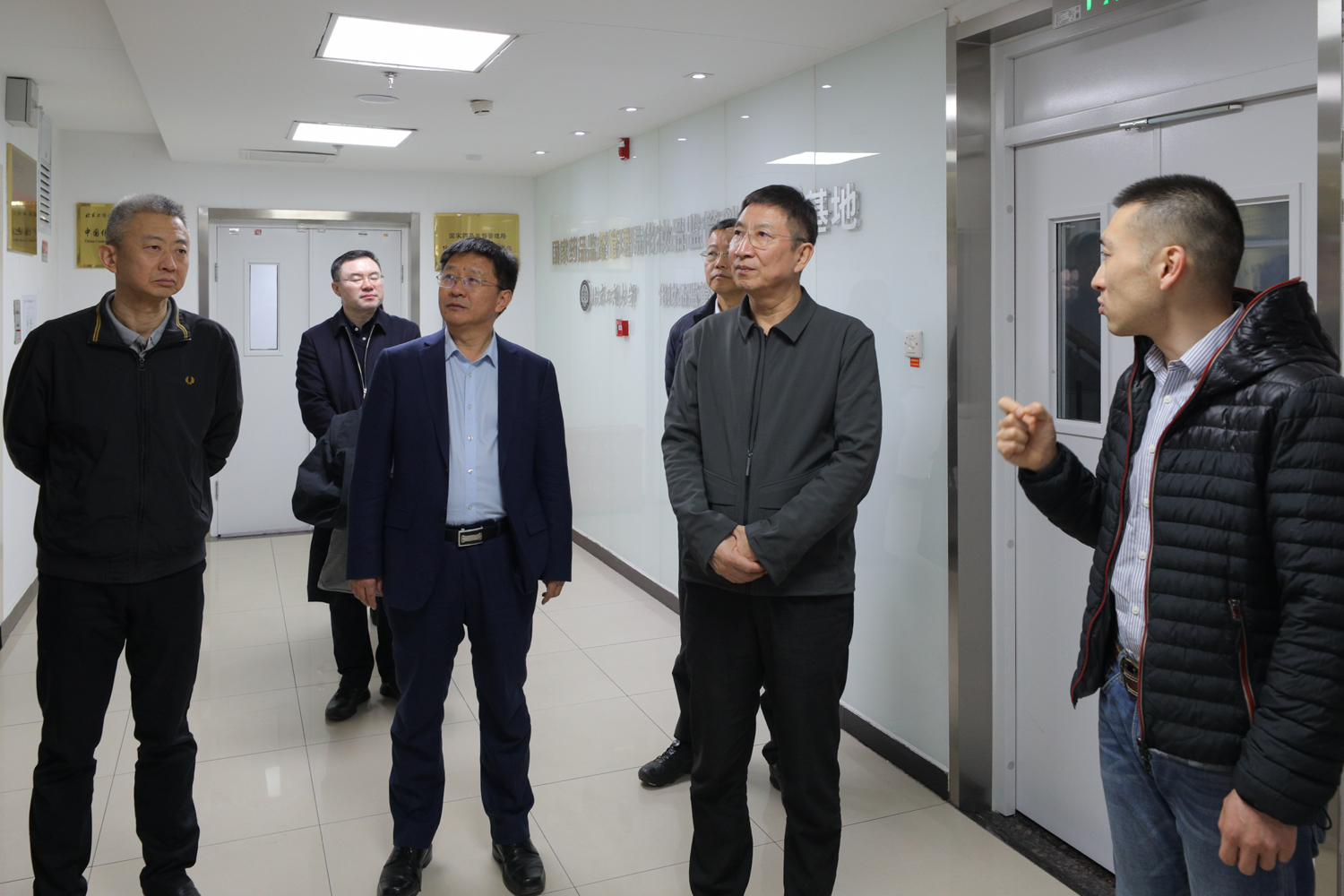 會后,黨委書記沈千帆,黨委副書記、校長郭建華陪同孫其軍一行參觀了化妝品監管科學研究基地,實地了解學校在化妝品學科建設、人才培養和化妝品創新研究等方面的情況。