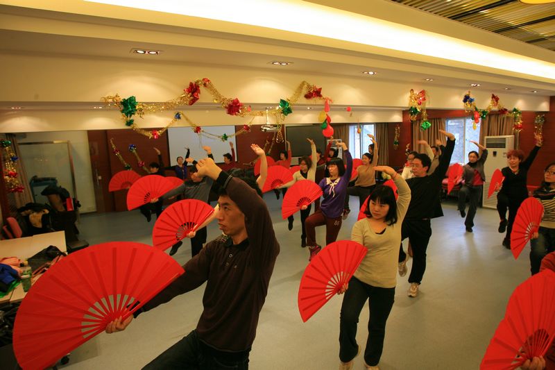 根據(jù)北京市和學(xué)校體育健身計劃,學(xué)校決定今年在全體教職工中推廣“中國功夫太極扇”活動,并在學(xué)校春季運(yùn)動會的開幕式上表演“太極扇”。