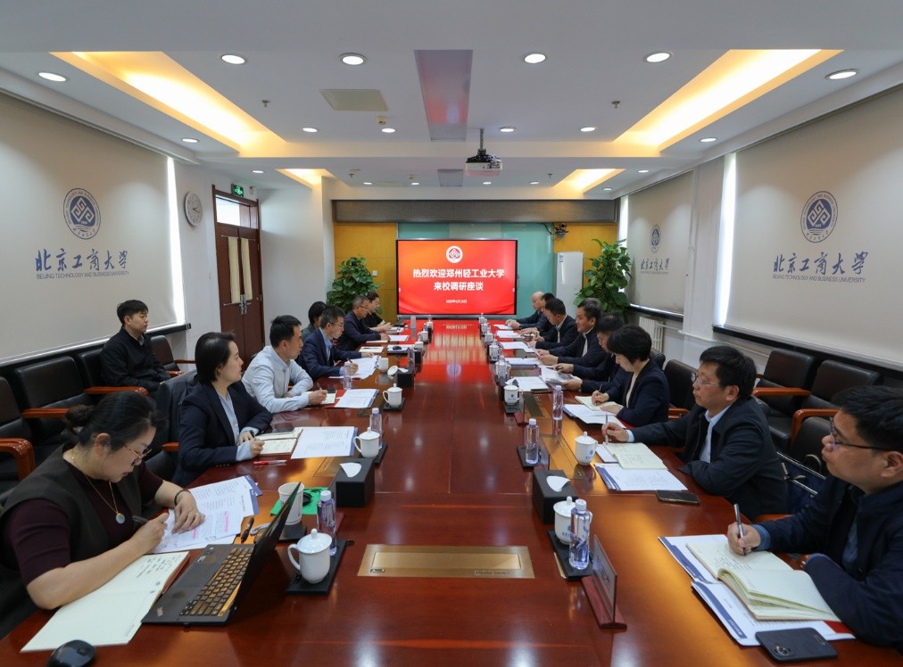 肖艷秋對北京工商大學的熱情接待表示感謝。他介紹了鄭州輕工業大學的歷史沿革、發展思路和建設路徑。他表示,鄭州輕工業大學作為河南省特色骨干大學建設高校、河南省國際化特色試點高校,牢固堅持社會主義辦學方向,扎根中原大地,圍繞食品科學與工程和能源與動力工程兩大特色優勢專業,持續在學科發展、人才隊伍建設、學部制改革等方面深化協同發展,積極為國家、地方和行業高質量發展貢獻學校智慧和力量。他希望通過此次調研交流,進一步加深兩校的密切合作,增強資源共享、推動戰略協同,譜寫兩校共謀合作發展新篇章。