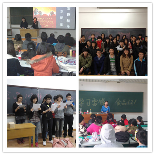 此外,食品學院為把“學雷鋒”活動延展到每個同學的身邊,在3月份集中開展了“學習雷鋒同志,弘揚雷鋒精神”主題班會活動。各班圍繞“學習雷鋒同志,弘揚雷鋒精神”,開展了形式多樣的主題活動。有的班級舉辦了“團支部學習雷鋒座談會”,暢談了各自對雷鋒精神的理解。有的學生認為雷鋒精神一直我們身邊,“感動中國人物”中19年獻血6萬毫升的郭明義,靠賣羊肉串資助貧困學生的阿里木等等,都是雷鋒精神在新時代的具體體現,是大家學習的榜樣。有的學生則表達了自己對雷鋒同志的敬仰和欽佩之情。大家還談到了班級內部的好人好事,學生們紛紛表示要向他們學習,使更多的“學雷鋒標兵”閃閃發光;有的團支部圍繞此次活動主題,開展了征文或知識競賽等活動。通過開展形式各樣的活動,加強了學生們對雷鋒精神的理解,使大家對雷鋒同志的生平事跡得到了更深的認識。