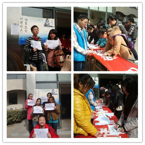 3月8日,食品學院在阜成路校區開展了以“學雷鋒,添綠色”為主題的環保倡議活動。學生拿出已經廢棄的紙張,在紙的背面寫上自己的學雷鋒宣言,并倡導大家不隨便亂扔垃圾,不浪費紙張,不使用一次性筷子,保護環境——保護人類賴以生存的家園。活動雖小,但每個學生都融入其中,爭做雷鋒精神的踐行者。一個人的力量是有限的,集體的力量是無窮的,通過對環保的倡議活動,積極鼓勵和帶動全校加入到學雷鋒的活動中,加入到對環境保護的行動中,倡導大家積極行動起來,共同建設天藍、地綠、水清的美麗中國,實現綠色的“中國夢”。