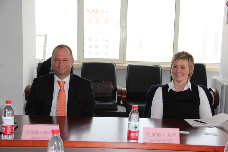 4月1日下午,牛津大學(xué)赫特福德學(xué)院國際培訓(xùn)項(xiàng)目和會(huì)議主管凱羅琳·萊絲(Caroline Rice)以及教學(xué)與語言項(xiàng)目總監(jiān)安德魯·海明威(Andrew Hemingway)一行兩人來我校訪問。李朝鮮副校長在阜成路校區(qū)接見了代表團(tuán)。