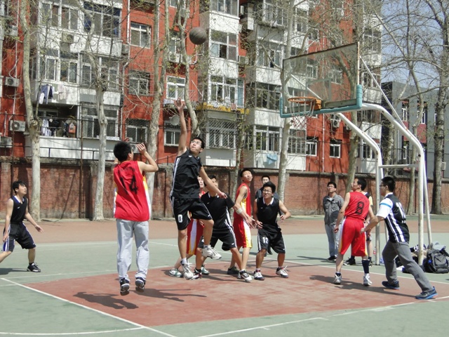 隨后,謝校長作為一名籃球愛好者,饒有興致地走到同學們中間,親自為籃球賽揭幕戰開球。高高拋起的籃球點燃了本屆籃球賽的激情,經過激烈角逐,商學院與理學院聯隊以28:21戰勝食品學院,法/馬與藝傳學院聯隊以50:34戰勝MBA隊,分別贏得首場比賽的勝利。