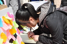 4月24日中午,校團委、學生會、研究生會、紅十字會在良鄉(xiāng)和阜成路校區(qū)分別設立四個捐款接收站點。同學們紛紛捐出自己的一份愛心,寫下送給災區(qū)人民的祝福。捐款活動現(xiàn)場井然有序,10元、50元、100元……同學們力所能及奉獻愛心,場面溫馨。有同學說到,“雖然自己的捐款對于災區(qū)人民只是杯水車薪,但希望能貢獻出自己一份微薄的力量。”