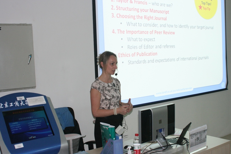 4月24日,圖書館邀請Taylor & Francis 出版集團公司亞洲區(qū)期刊副出版人Rachel Sangster女士舉辦了“Taylor & Francis ——論文發(fā)表前的準備及作者支持”專題講座。Rachel Sangster女士就如何選擇最適合的期刊、如何組織文章結(jié)構、如何應對評審意見,以及怎樣最大程度爭取投稿成功等讀者最為關心的問題,詳細介紹了向國際期刊投稿的注意事項和問題解決方案。近百名師生讀者參加了本次講座。