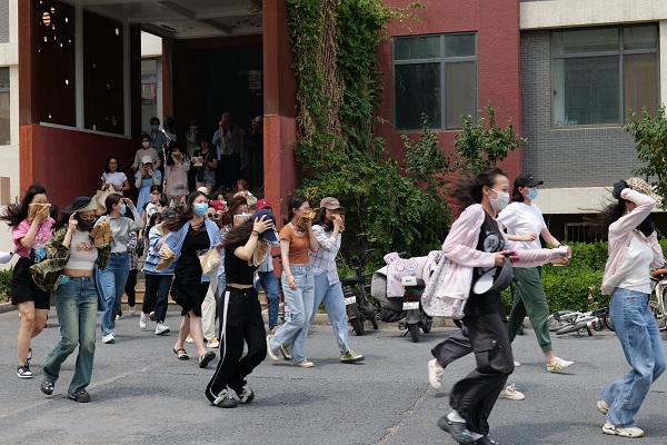 本次演習以學生公寓某宿舍內使用違章電器引發火災為預設背景,分“發現火情、報警與接警”“人員疏散、搜救及滅火”“人員集結、總結與演示培訓”三個階段具體實施,對發生火情時學校相關部門應對處置的方法和師生逃生疏散的程序進行全過程實戰演練。