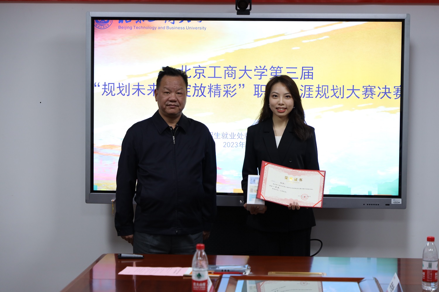 本次大賽自2020年至今已舉辦三屆,賽事緊密結(jié)合必修就業(yè)課程職業(yè)生涯規(guī)劃的教學任務開展,由各學院任課教師選拔報送優(yōu)秀的職業(yè)生涯規(guī)劃書參賽,大賽共收到278份生涯規(guī)劃書,經(jīng)材料審核和初賽選拔出24位選手進入復賽,經(jīng)過復賽的兩場比拼遴選出10名選手進入決賽。大賽特邀教育部學生服務與素質(zhì)發(fā)展中心特聘專家王潔穎、北京理工大學就業(yè)指導中心主任助理田靜、北京京房眾聯(lián)勞務派遣有限公司總經(jīng)理王楠、北京工商大學研工部教師李昀澄擔任評委。十位參賽同學經(jīng)過生涯陳述、回答評委提問、生涯主題卡答題等環(huán)節(jié)的激烈角逐,商學院注會214的姜俊宇同學獲得了一等獎。