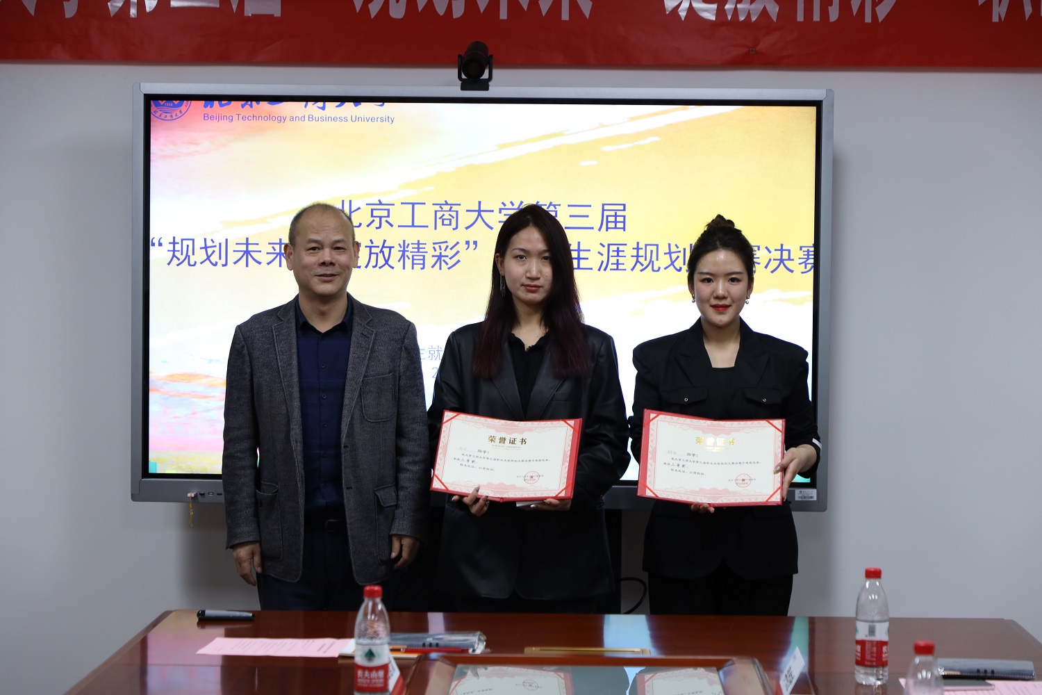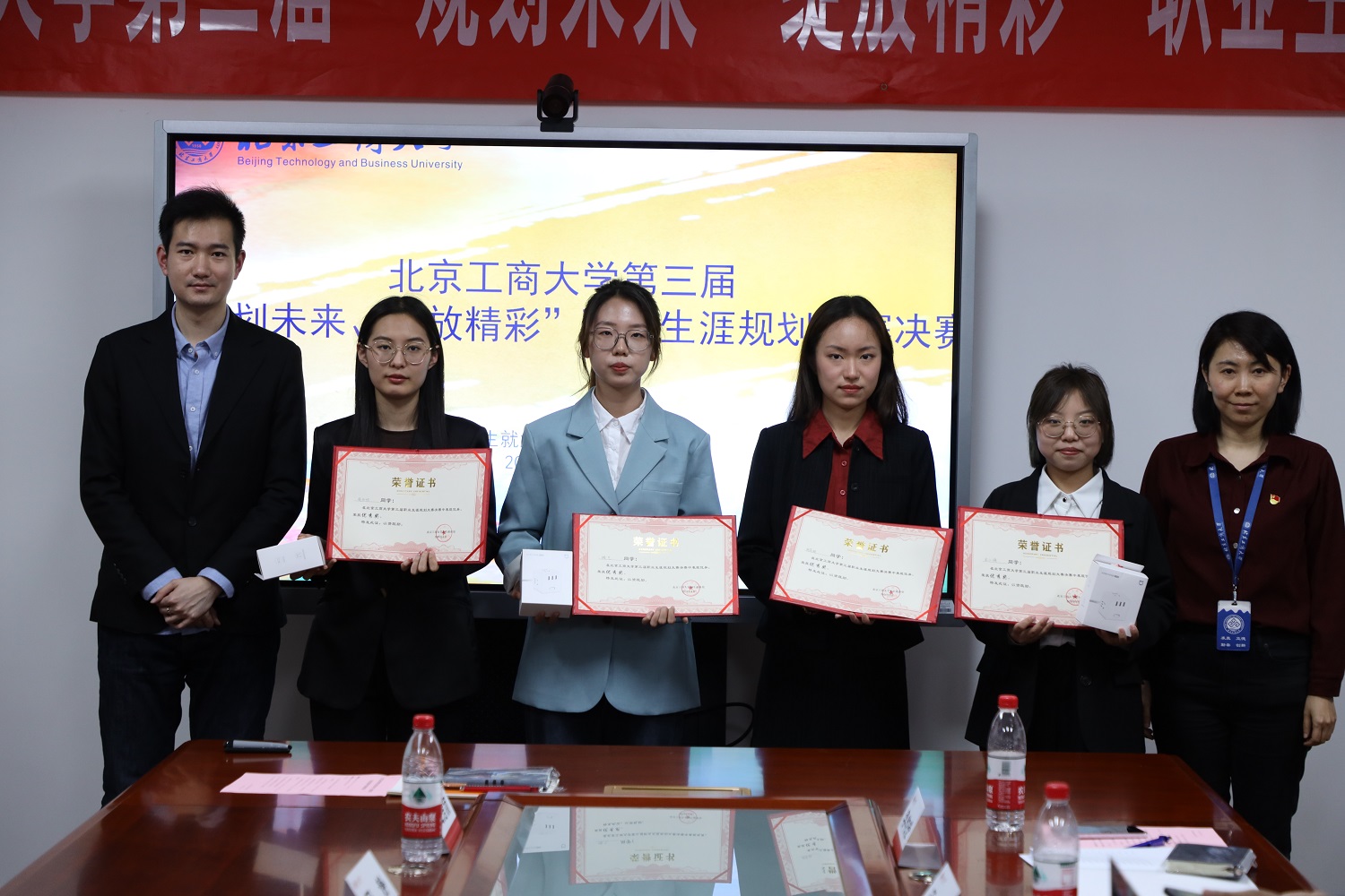 鄭文紅致閉幕詞時對同學們提出三點建議:一是同學們在學習和生活中需要保持謙和低調(diào);二是要努力學習、不斷提升個人素質(zhì);三是要學會與人相處,學會適應團隊生活并取得爭取獲得更大的成績。今年高校畢業(yè)生達1158萬,北京地區(qū)高校畢業(yè)生28.5萬,學校和畢業(yè)生共同面臨著空前的就業(yè)壓力,他希望同學們通過大賽,及早著手準備,充分進行自我認知與評估,以陽光的心態(tài)面對生活和各種困難,通過學習他人的長處和規(guī)劃方式,應對社會和環(huán)境的變化,學以致用,積極發(fā)現(xiàn)新模式、新賽道,把學校所學、個人發(fā)展和社會需求緊密結(jié)合,做有想法、有責任感、有擔當?shù)臅r代新人,不斷通過“學習—規(guī)劃—實踐—探索—反思—修正”這種方式投身學習與實踐,不斷提升自己的就業(yè)競爭力。