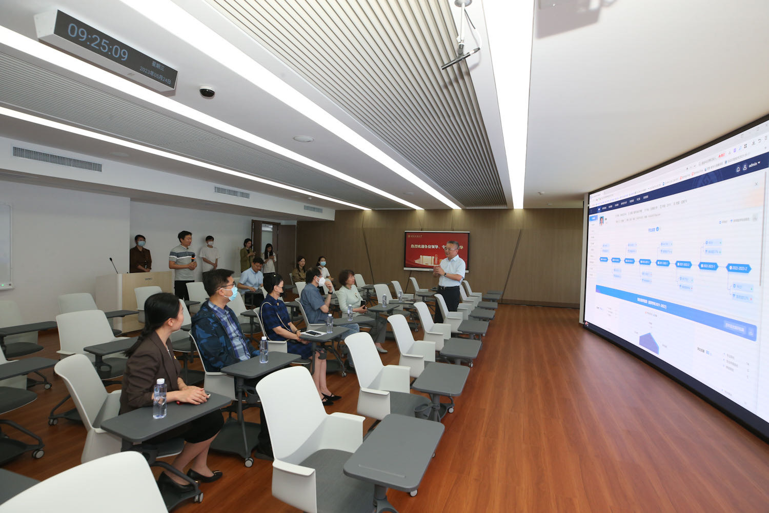 座談會(huì)前,馮偉一行實(shí)地走訪了學(xué)校數(shù)字未來(lái)中心,曹顯兵介紹了中心建設(shè)情況、信息技術(shù)與教育教學(xué)深度融合等有關(guān)情況。