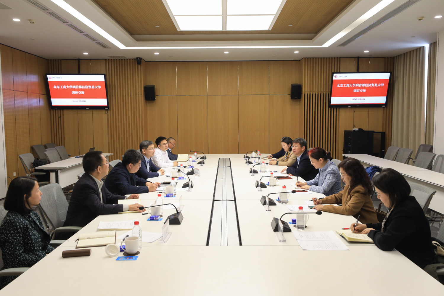 3月22日,我校黨委副書記、校長郭建華帶隊赴首都經濟貿易大學調研,首都經濟貿易大學黨委書記王文舉,首都經濟貿易大學黨委副書記、校長吳衛星會見了郭建華一行。