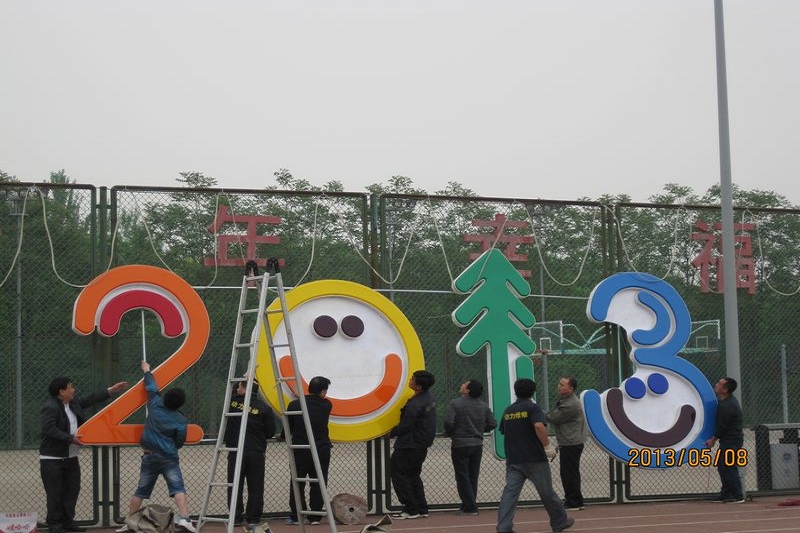 在運動會開幕的前兩天,后勤管理處的同志們紛紛行動起來,全力做好運動會開幕式的照明、會場布置、音響設(shè)備安裝、食堂菜品等各項準(zhǔn)備工作。后勤管理處處長盧燦寬介紹,“為了保證操場觀禮臺的亮度,5月8日一大早,天空中飄著小雨,動力維修科的電工師傅們趕赴良鄉(xiāng),支援良鄉(xiāng)操場的大型吊燈安裝工作。此次燈具安裝任務(wù)十分艱巨,安裝人員需要乘坐長臂吊車,在棚頂處安裝射燈,作業(yè)面小,且?guī)в幸欢ǖ奈kU性。這項工作要求安裝人員既要有過硬的技術(shù),又要有膽大心細的勇氣。” 當(dāng)我們在亮如白晝的運動場上觀看精彩的開幕式表演時,我們不曾看到的是,后勤管理處同志們安裝、拆卸各種設(shè)備時流下的汗水。