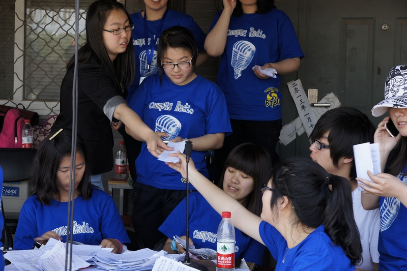 廣播臺的同學(xué)們說:“念運動會的稿件是最需要激情的,喊了一天嗓子都喊啞了。但是沒有身處其中的人永遠不會明白,當(dāng)你聽到自己的聲音在操場上回響時,那是怎樣一種感受。能夠傳遞工商聲音,也是我們的幸福。”