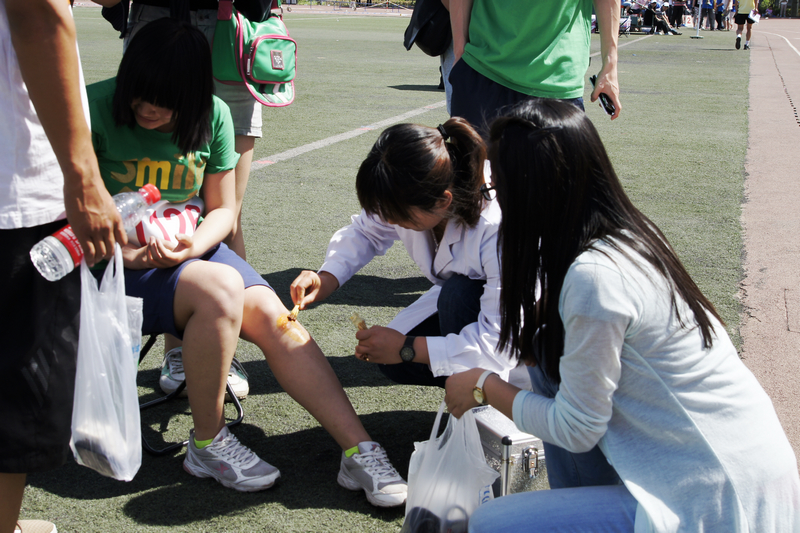 為保證同學(xué)們的比賽中的健康,校醫(yī)院在賽前多次完善預(yù)案,專門安排醫(yī)生赴比賽現(xiàn)場做保障工作。兩天的運動會中,醫(yī)生們多次、及時處理了同學(xué)們遇到的損傷,向同學(xué)們宣傳了科學(xué)運動的理念。校醫(yī)院院長楊曉明說:“通過今年的運動會保障工作,我們發(fā)現(xiàn)同學(xué)們不太科學(xué)的運動方式造成的損傷較多,比如中長跑運動員賽前準(zhǔn)備活動不足造成肌肉拉傷等情況。還有部分同學(xué)因體質(zhì)較弱,出現(xiàn)暈倒等情況。針對這些情況,今后,校醫(yī)院將加強科學(xué)運動知識的宣傳,讓師生安全運動,增強體魄。”