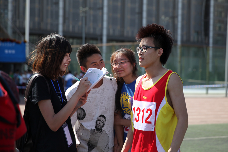在北工商2013年運動盛會中,集結(jié)了全校師生共同的努力與汗水與堅持。健兒們揮灑汗水奮力奔跑;老師們風(fēng)姿依舊,魄力不減;裁判們守住終點,迎接一個個新紀(jì)錄的產(chǎn)生。操場與看臺上的喧騰點燃了北工商夏日校園里最激情的時刻,但是你可曾注意到他們,在背后,為運動會的順利舉辦默默付出的人們?在我們驚嘆于太極扇表演的整齊有致時,也許沒有想到老師們犧牲了多少的休息時間來反復(fù)練習(xí);在我們欣賞絢麗綻放的煙花時,也許沒有考慮過有多少人為了這場精彩的盛會而忙碌;在我們通過視頻和圖片關(guān)注賽場上精彩表現(xiàn)時,也許沒有注意到每一臺攝像機背后尋找角度的眼睛。與這場運動會中的每一個細節(jié)一樣,運動會背后的故事,同樣精彩。