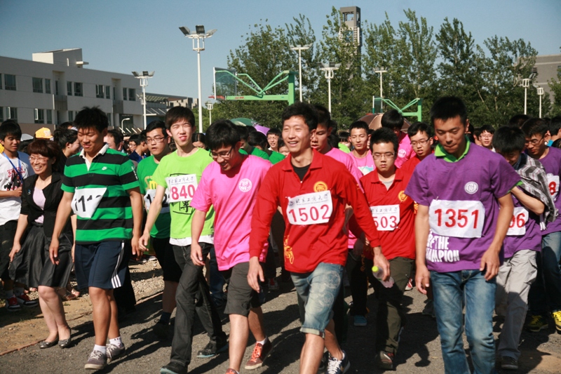 在燦爛的陽光下,來自9個學院的選手們參加健步走比賽,熱情高漲。每院派出5男5女共10名選手參加比賽,選手們穿著各學院的統一服裝排列整齊,場面壯觀。本次健步走比賽不僅考驗個人的能力與耐力,更考驗選手間的團結合作與相互扶持。值得一提的是,比賽步道沿線是“綠動工商”種植活動中各學院的種植區域,各種植區以紅色主題命名,在濃濃綠意中閃耀出“中國夢,工商情”的光輝。