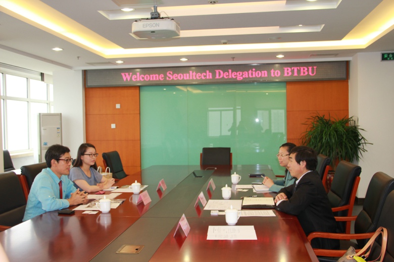 65日上午,李朝鮮副校長在阜成路校區接見了來我校訪問的韓國首爾國立科技大學國際部主任徐眞煥(Suh Jin-hwan)一行。