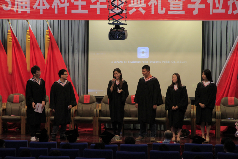 教務處副處長李海生宣讀了《北京工商大學關于2013屆本科生畢業暨學士學位授予的決定》,學院黨總支書記秦巍宣讀了表彰優秀畢業生的決定。09級藝術與傳媒學院共有327名學生順利畢業,15人獲得北京市優秀畢業生榮譽稱號。