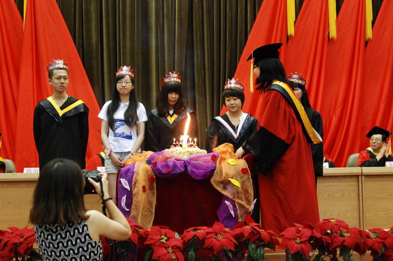 畢業生們逐一接受了在場領導和導師們的扶蘇,在“求真、立德、勤奮、創新,做好人,做有用人,做成功人”的高呼聲中,畢業生們將學士帽高高拋向空中,放飛夢想。