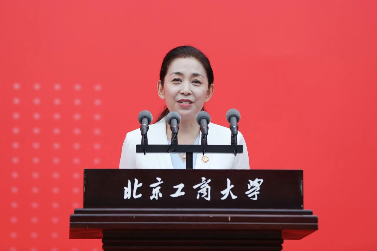 優(yōu)秀校友代表、學校81級自控系校友、中國人工智能學會副理事長、北京郵電大學教授杜軍平發(fā)言,她分享了自己的求學與科研感悟,深情回顧了四十余年前在母校打下的扎實基礎,并結合自身在人工智能領域的深耕經歷,勉勵新生扎根專業(yè),筑牢學識根基;勇于探索,激活創(chuàng)新基因;開闊視野,追趕學科前沿;珍惜情誼,學會協(xié)作包容。她特別指出,當前北工商以“融通、賦能、跨界、共生”為核心的“工商一體化”發(fā)展理念,為大家搭建了理論學習與實踐創(chuàng)新的廣闊平臺。希望新一代北工商人把握人工智能等戰(zhàn)略機遇,將個人成長融入國家需要,勤學篤行,協(xié)作共進,成長為有理想、有本領、有擔當?shù)臅r代新人。