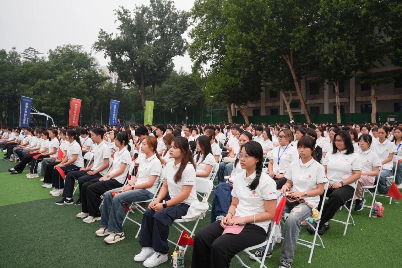 校領導為新生代表佩戴校徽,全體新生鄭重地將校徽佩戴于胸前。“求真、立德、勤奮、創(chuàng)新”的校訓精神在這一刻完成傳承。