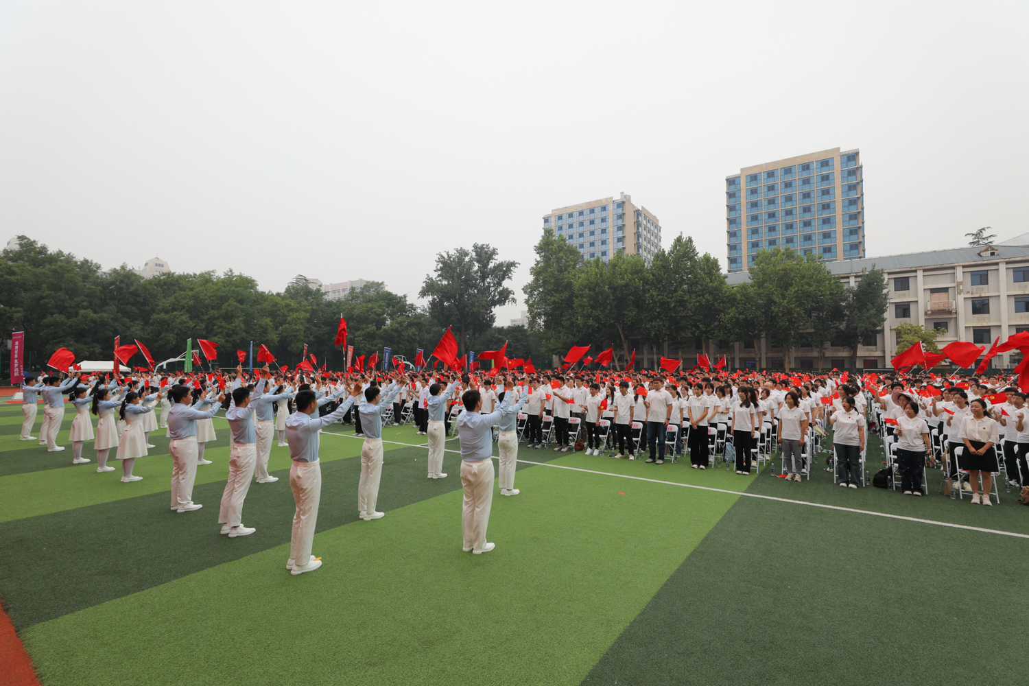 國旗護衛(wèi)隊邁著整齊的步伐入場。在莊嚴的國歌聲中,鮮艷的五星紅旗冉冉升起,全體師生肅立齊唱,表達對祖國的無限熱愛與崇高敬意。