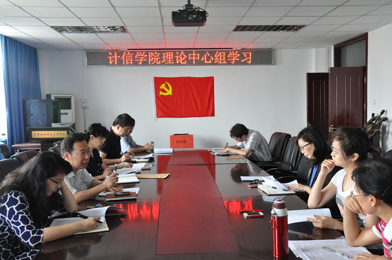 6月26日下午,計信學院黨總支理論學習中心組成員齊聚阜成路校區共同學習劉淇同志在北京市第十一次黨代會上的報告——《全力推動首都科學發展,為建設中國特色世界城市而努力奮斗》,開展喜迎七一活動。大家重點研讀了報告中今后五年工作的基本要求、指導思想、奮斗目標、主要任務,并結合我校向教學研究型大學轉變、本科教學綜合改革等重點工作,認真思考探討了學院的發展規劃、學科特色和科研方向。如何建立政產學研用一體化機制,加強高等教育資源整合,提升協同創新能力,建立學院特色是討論的重點和共識。