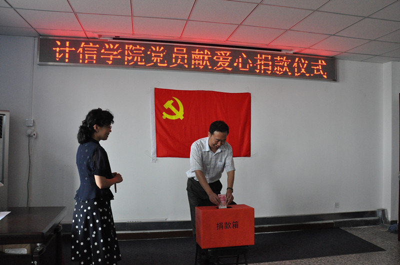 此外,計信學院積極響應“共產黨員獻愛心”捐獻活動,舉行了“黨員獻愛心”捐款,院領導班子成員帶頭,教工黨員積極響應,進行了現場捐款。“黨旗凝聚力量,信念鑄就夢想”,計信學院黨總支將繼續用實際行動踐行北京精神,展現黨員風采。