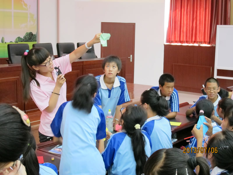 活動(dòng)之后,孩子們迎來(lái)了第一節(jié)手工實(shí)踐課。看到實(shí)踐團(tuán)員們親手做的手工作品,孩子們產(chǎn)生了強(qiáng)烈的好奇心,迫不及待地動(dòng)起手來(lái)。紀(jì)夢(mèng)迪,李紅巖等小老師生動(dòng)耐心地講解如何折紙玫瑰,不一會(huì)兒,一朵朵美麗的玫瑰盛開(kāi)在孩子們的手中,一張張笑臉印在了小老師們的心間,一個(gè)個(gè)夢(mèng)想在孩子們心中生根。