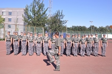 今天的訓練內容依舊以踢正步為主,熟悉的動作變得規范起來,整齊的步調使隊伍和諧統一。教官為了糾正同學們踢正步時腳的抬起高度,拿來一根六七米長的繩子放在兩排隊列中間,幫助同學們調整。經過三天的相處,同學們和教官之間越來越融洽,休息時教官和同學們一起玩、一起表演節目,氣氛十分融洽。