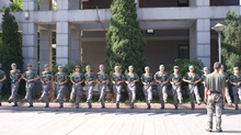 盡管赤日當空,但經(jīng)院學子的熱情不減,精神抖擻地參與到了各個項目訓練當中。在軍訓中,高溫酷暑給軍訓工作帶來困難,有的學生病倒了,憑借著頑強的意志,稍有好轉(zhuǎn)便堅持訓練;有的學生帶病堅持訓練。在部隊教官親切的關(guān)懷和嚴格訓練下,在短短的幾天里,齊步走、正步走、齊步變正步、解散、集合及分列式等預(yù)定訓練科目已初見成效。教官手把手教,學生認真地學。三營方隊整齊,精神飽滿,步伐矯健、口令準確、聲音嘹亮。