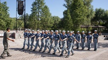 連續(xù)幾日的軍姿以及踏步齊步訓練早已使同學們疲憊不堪,今天的主要訓練項目是更為困難的踢正步。正步走的要求很多:腳背要繃直、腿要抬高、前臂要打平、后手要有力……開始時,四營的同學們正步走得很不規(guī)范,腿高度不夠,胳膊沒有使勁,走路節(jié)奏也太快,教官不厭其煩地為同學們糾正動作。無數(shù)次地踢腿后,大家終于達到了一致。看似簡單的擺臂其實也很難。每個人的小臂都要抬到胸口的高度,離身體一拳距離,手掌半握,虎口朝上。又是一陣定位與修正,同學們終于做起了定位動作。