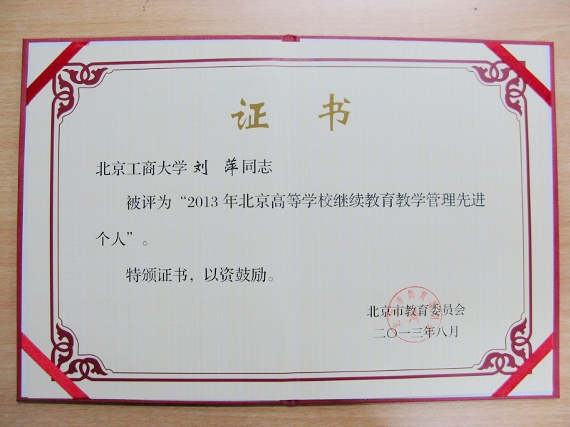 在北京市教育委員會首次組織的面向繼續教育評獎中,我校繼續教育學院以劉紅曄副教授為帶頭人的“會計學專業”教學團隊被評為“2013年北京高等學校繼續教育優秀教學團隊”,并被評為重點建設團隊;副院長劉萍榮獲得“2013年北京高等學校繼續教育教學管理先進個人”稱號。