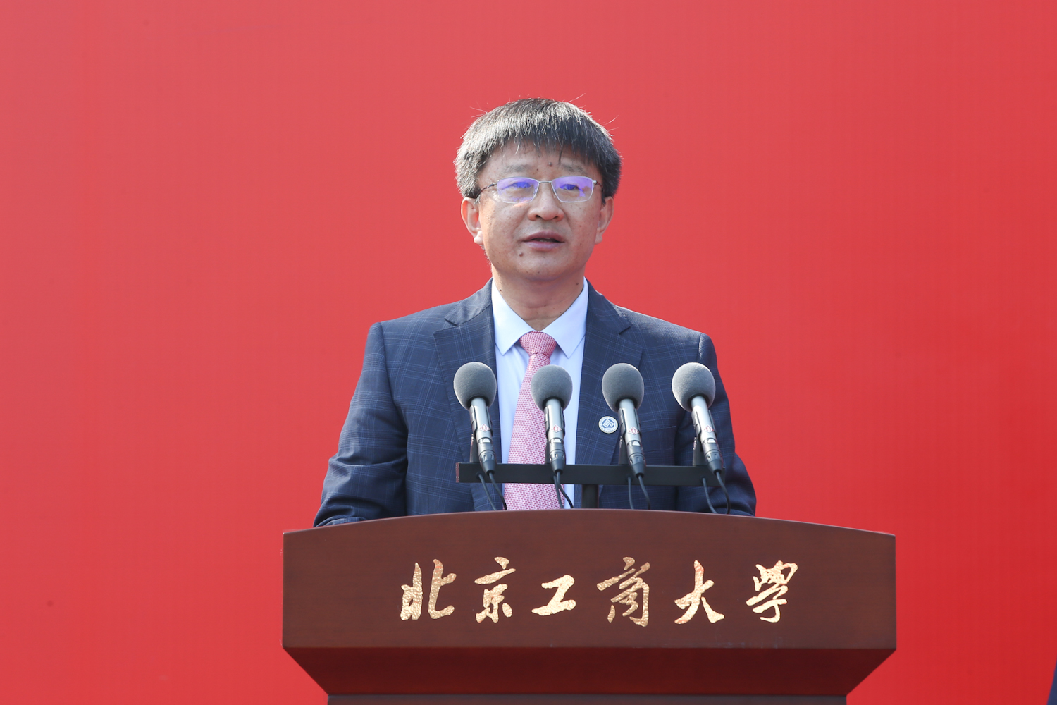 黨委副書記、校長郭建華發表題為《行遠自邇,篤行不怠》的講話。他表示,北京工商大學具有73年的光榮辦學歷程和深厚紅色基因,是國務院批準的全國首批碩士學位授予單位,是北京市重點建設的6所高水平研究型大學之一。近年來,學校錨定特色鮮明的高水平研究型大學辦學定位,聚焦國家和首都經濟社會發展急需、聚焦優勢學科專業,走上了“商科做強、工科做精、工商融合、雙輪驅動”的內涵式發展道路,開啟了深入推進“理工+經管”的工商發展新模式,為同學們成長發展創造了更好的條件、提供了更多的機遇。。期待同學們在接下來的3年甚至更久的時間里,勇立潮頭、勇攀高峰,秉承北工商人“求真、立德、勤奮、創新”的校訓精神,努力成為可堪大用、能擔重任的棟梁之才。