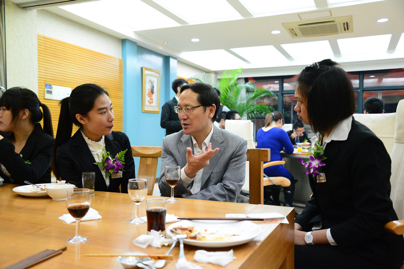 分享環節后,學生代表與老師們共享別具風味的晚餐,并就關心的話題與校領導暢談。學生代表之間也互相分享了彼此的經歷與感受。很多同學告訴記者,能夠參加此次冷餐會很興奮很開心,與校長共進晚餐很受激勵。大家邊吃邊聊,氣氛輕松熱烈,同學們紛紛表示這次活動受益匪淺,不僅聆聽了“智者”的聲音,也結交了多才多藝、志同道合的朋友。