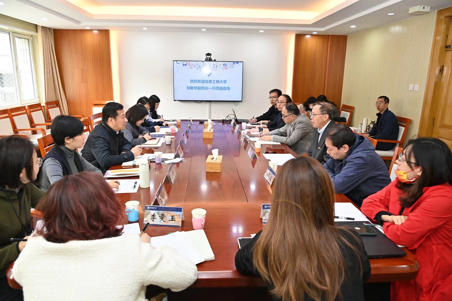 劉敏華對北郵的熱情接待表示感謝。他介紹了學校的發展歷史、愿景目標、學科建設等情況。他表示,北工商是北京市重點建設的高水平研究型大學,學校積極服務北京“四個中心”建設,堅持“商科做強、工科做精、工商融合、雙輪驅動”,以首都經濟社會發展需求為導向,扎實推進學校“雙一流”建設,希望此次調研交流能夠增進兩校在國際化工作方面的合作,依托北京國際交往中心平臺優勢,加強資源對接與共享,共同構建國際創新合作網絡。